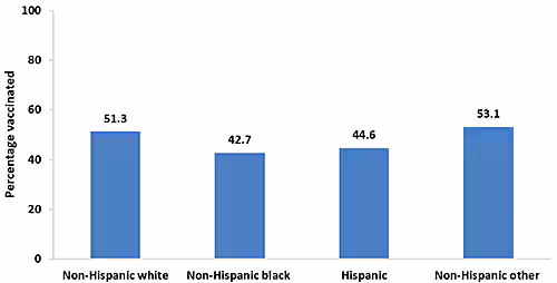 - All results are based on self-report and not validated by medical record review. However, our vaccination coverage estimates are similar to a recently published estimate based on provider-reported data from the Vaccine Safety Datalink (VSD) sites (42.1%)19.