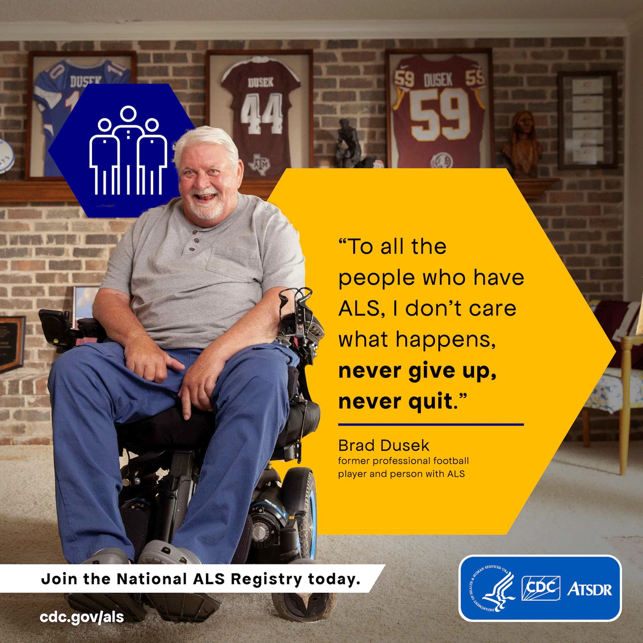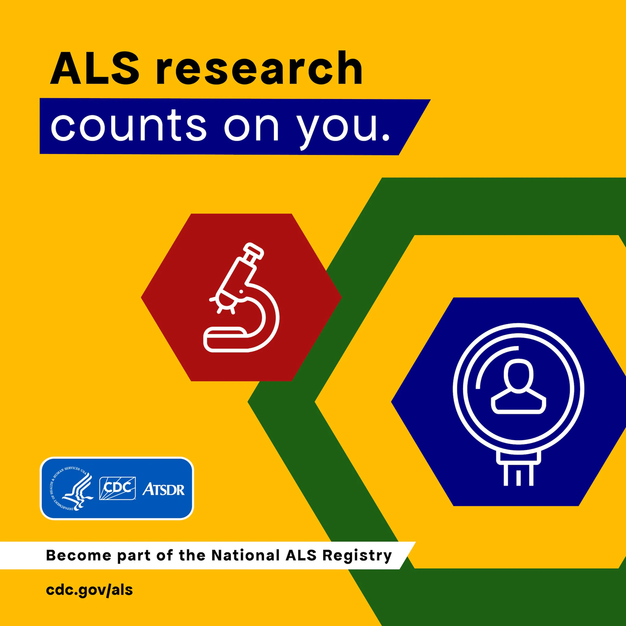 The National ALS Registry have prints, graphics, and social media materials that are approved for public use. Browse these overview graphics to share and help increase awareness about the Registry.
