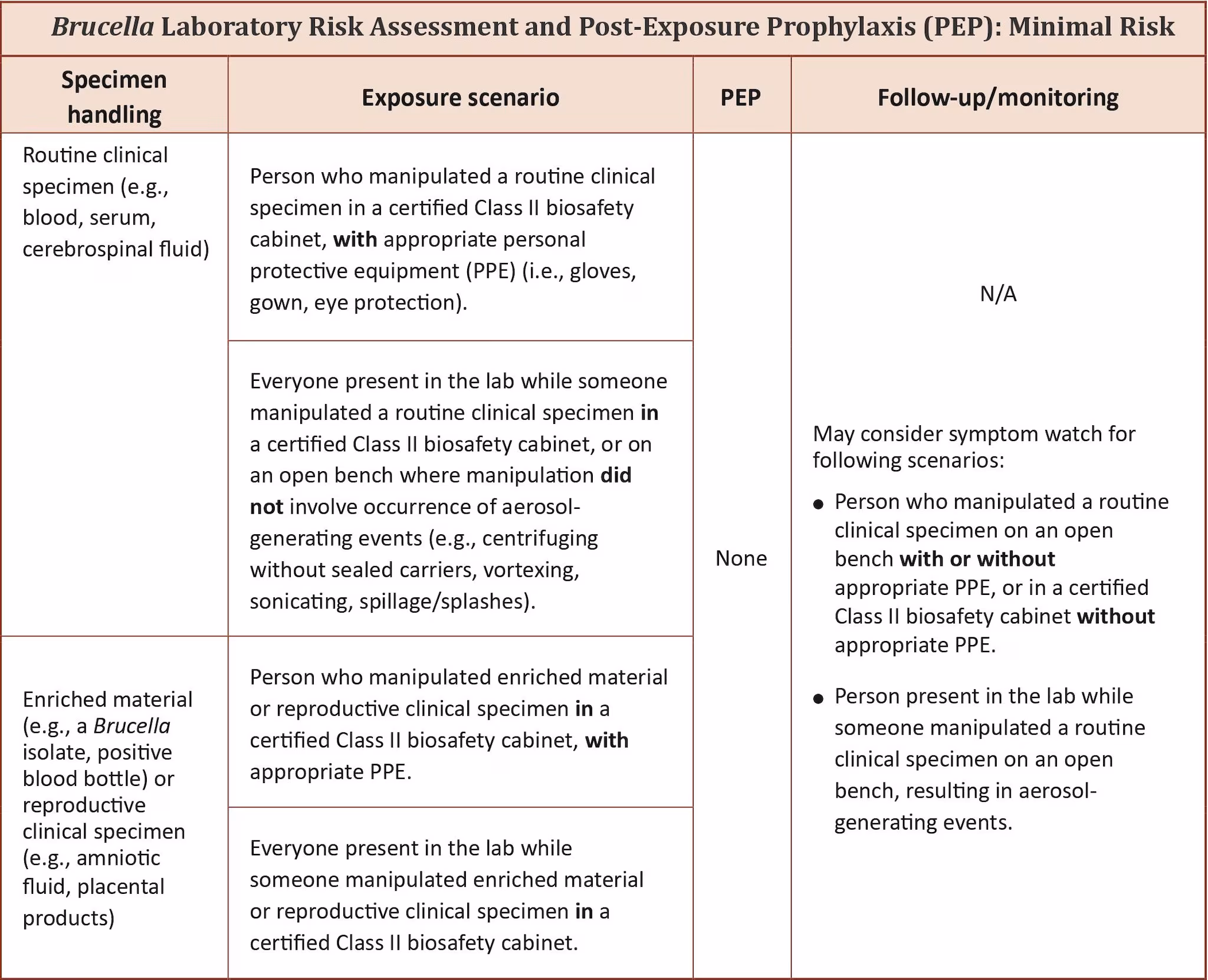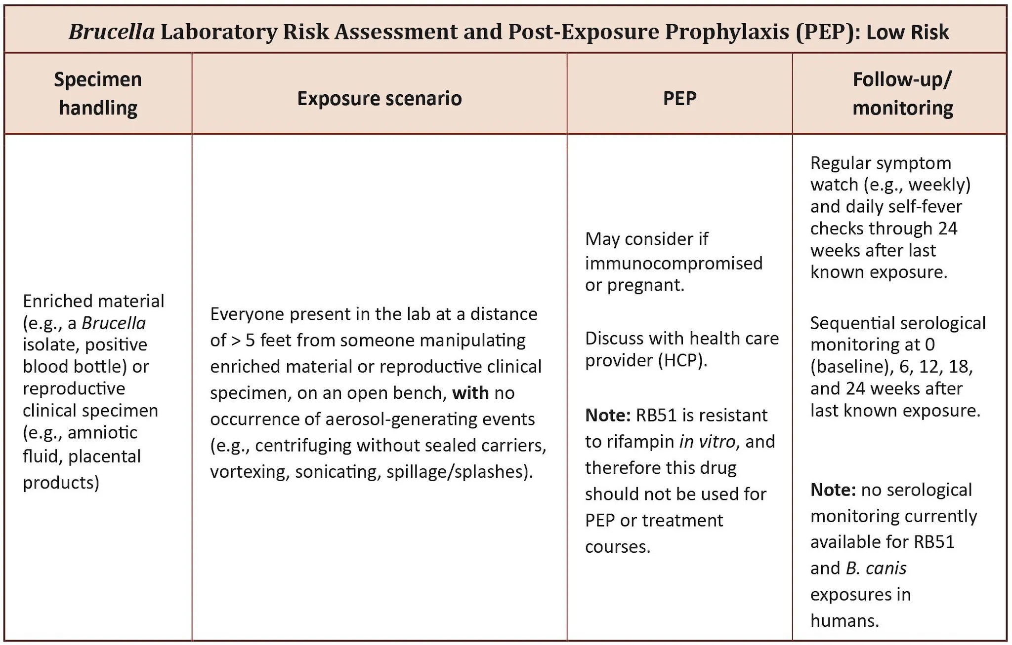 Brucellosis is the most commonly reported laboratory-associated bacterial infection. If you work in a lab, take precautions when handling samples to prevent infection. If you are exposed, determine your risk and follow recommendations for symptom monitoring and possible post-exposure prophylaxis.
