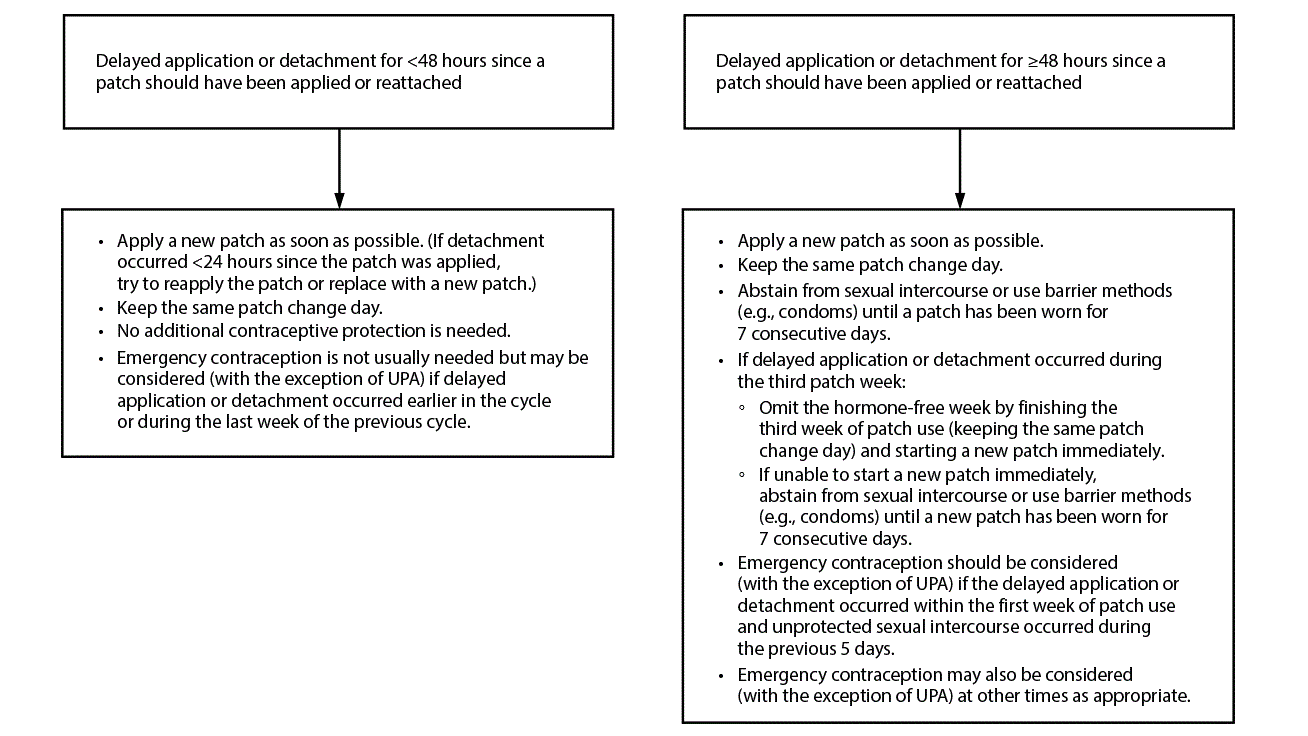 Figure 2. Recommended actions after delayed application or detachment* with combined hormonal patch