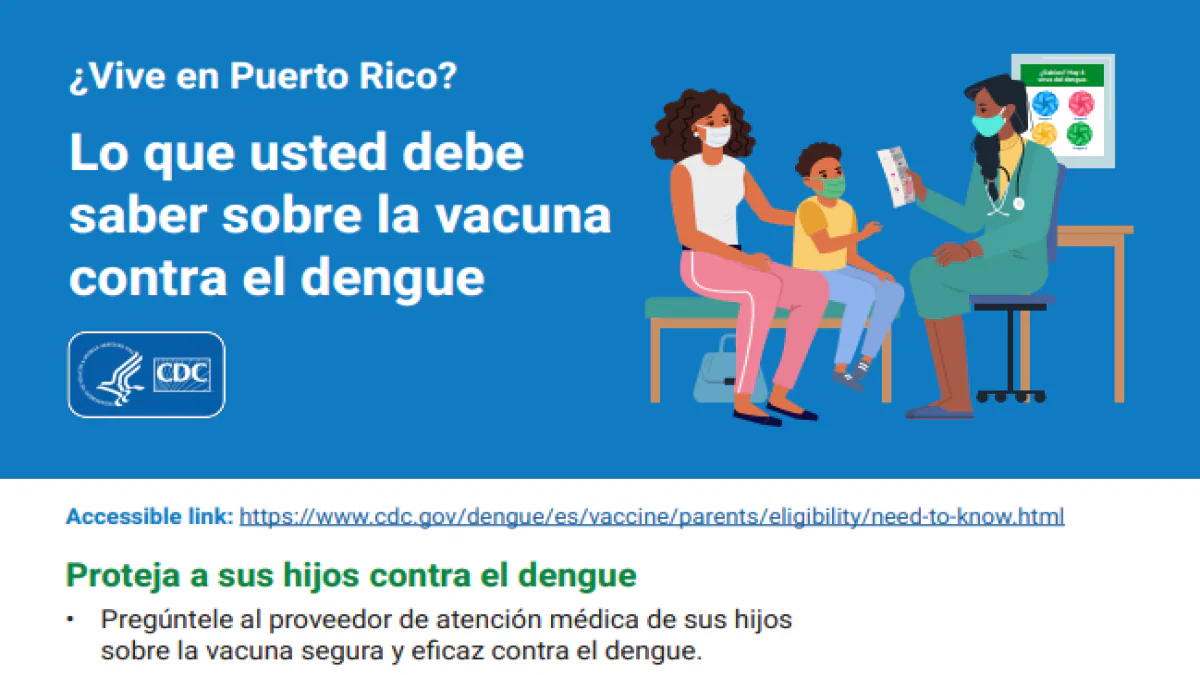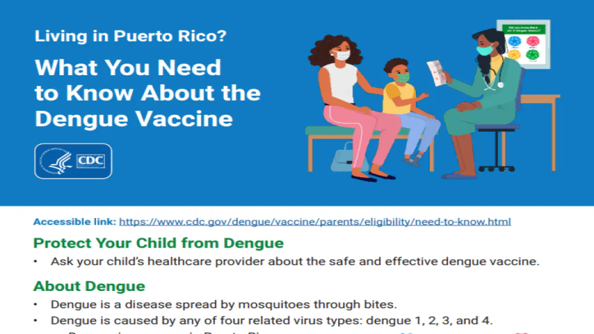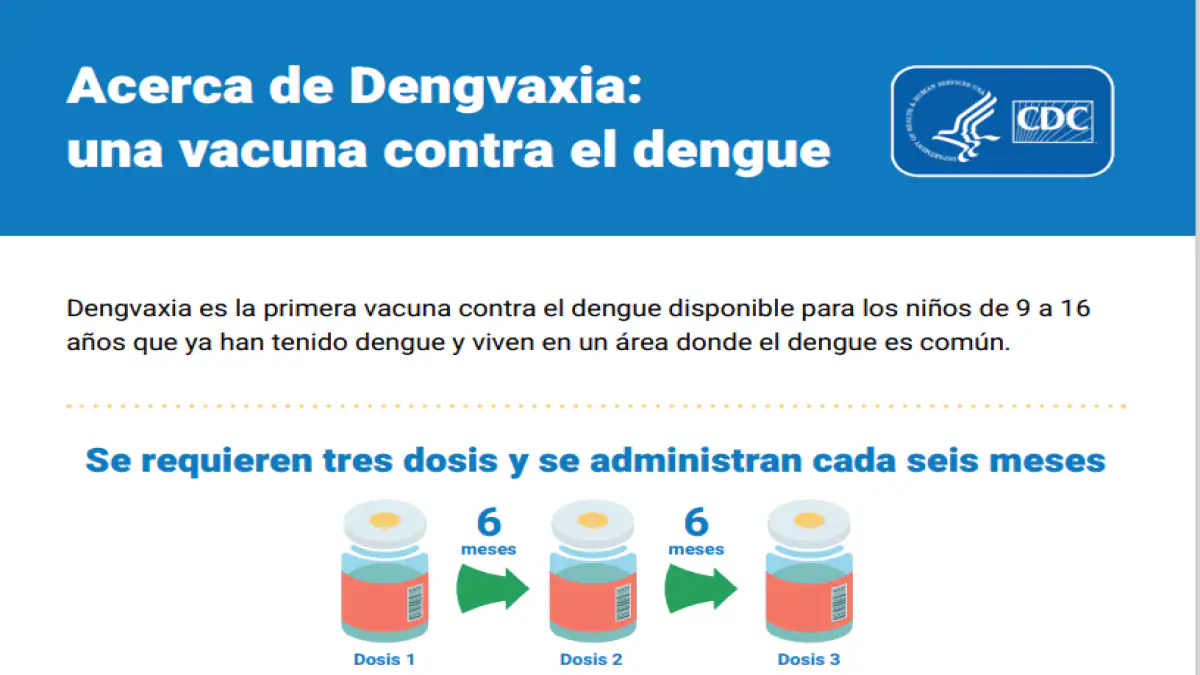 Dengue is spread through the bite of an infected mosquito. The following resources provide helpful information about dengue management and prevention including dengue vaccination and mosquito bite prevention. These fact sheets are available in English and Spanish for free download and use.