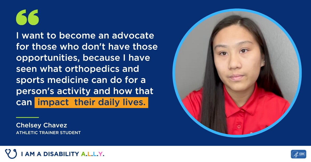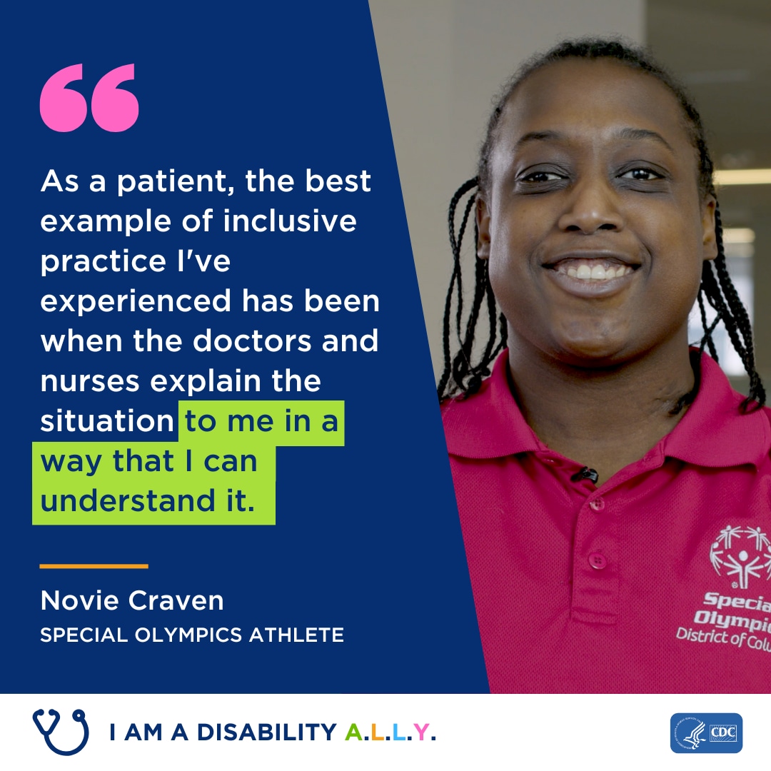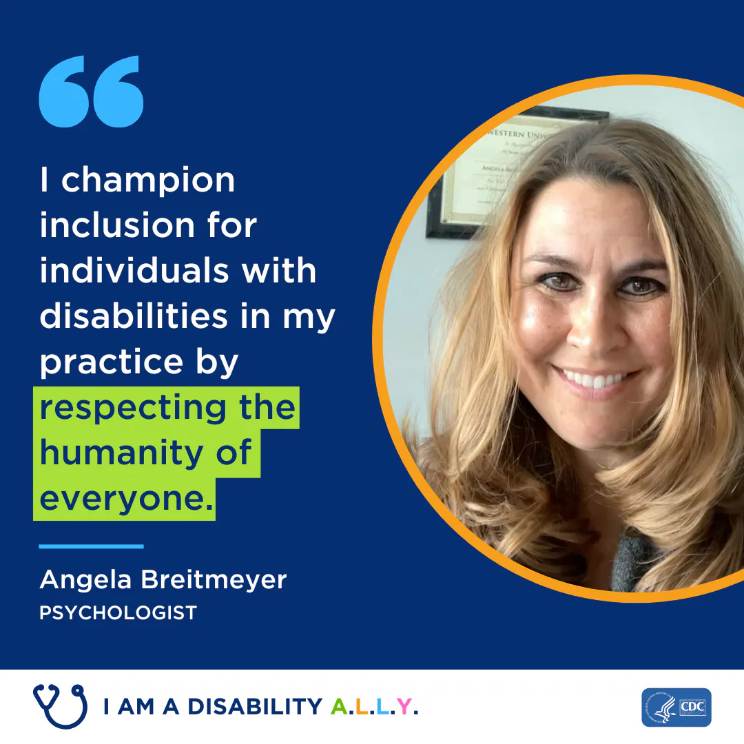 Use the graphics and videos below and join Centers for Disease Control and Prevention (CDC) in championing disability allyship by sharing these digital materials within your health system and community.