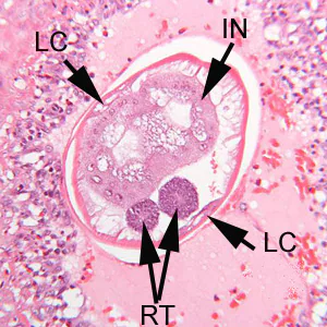 Standard precautions for the examination of histologic sections apply. Infectious L3 larvae are not encountered in a diagnostic laboratory setting.