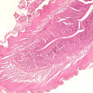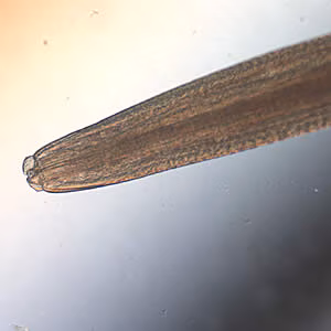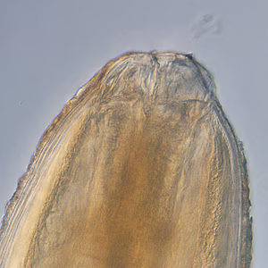 Genus-level identification is not required for patient management but may be accomplished by examination of digestive structures and lateral chords. Examination of esophageal and intestinal morphology usually requires clearing in lactophenol.