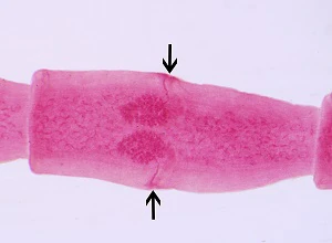 Adult tapeworm of D. caninum.