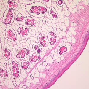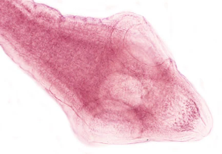 Cross-section of a D. caninum proglottid stained with hematoxylin and eosin (H&E).
