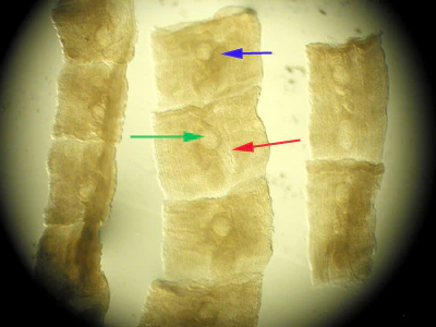 A study was conducted on herding dogs in a sheep-raising region of northeastern Arizona to determine the prevalence of Echinococcus granulosus. Public health officials wanted to determine the risk for hydatid cyst disease in the local people. Stool specimens from the dogs were collected and taken back to a laboratory for analysis. Figures A and B show objects recovered from the stool of several of the dogs. The objects varied in length from 10-13 centimeters and measured approximately 2 millimeters wide. What is your diagnosis? Based on what criteria?