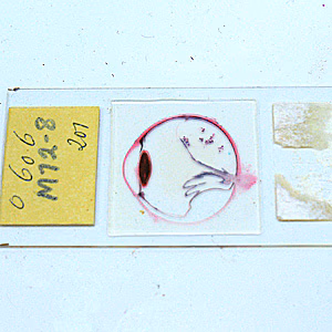 This leads us to the second case for this month. While packing for the move, we discovered an interesting pathology slide labeled with only an accession number. Figure A shows the slide and Figure B shows the specimen using a dissecting microscope. The slide was observed under a compound microscope for higher magnification; Figures C and E show areas captured at 40x, and Figures D and F at 200x. What is your diagnosis? Based on what criteria?