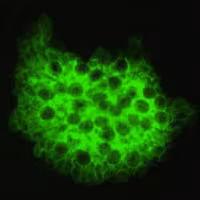 Indirect immunofluorescence using monoclonal antibodies against Pneumocystis jirovecii.