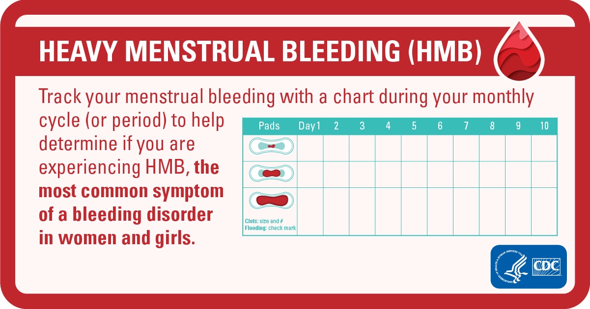 Heavy menstrual bleeding may be a symptom of a bleeding disorder. Talk to your doctor if you think you have heavy menstrual bleeding.
