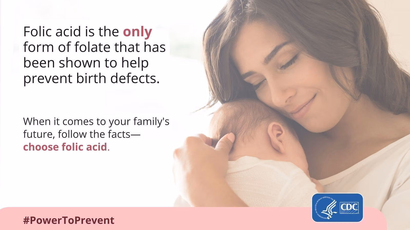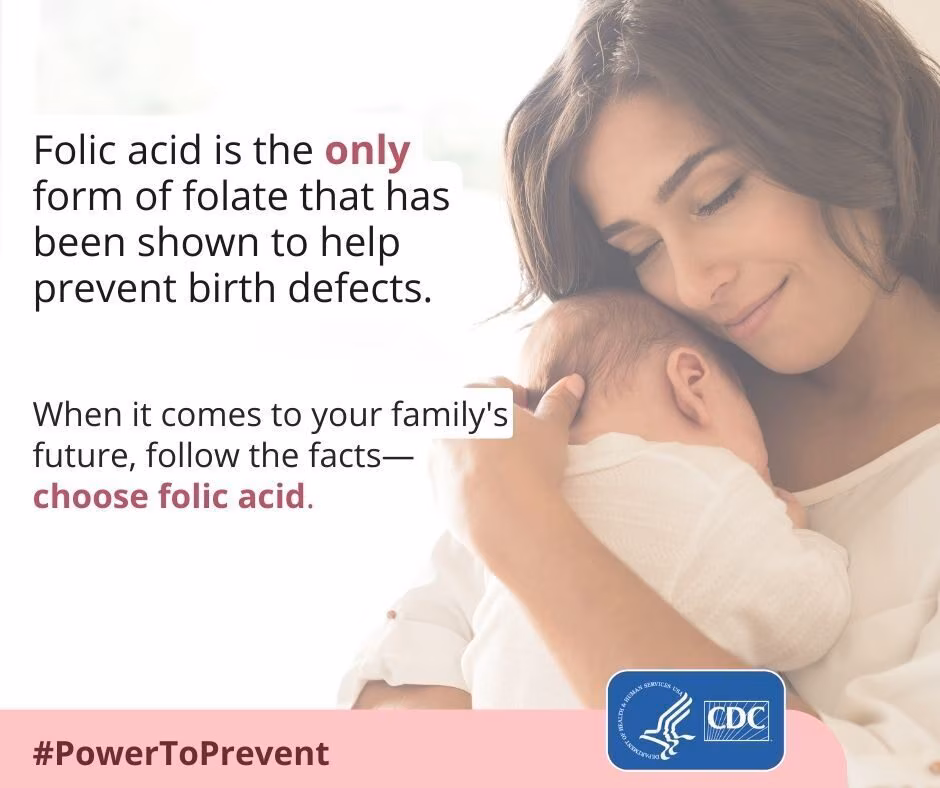 Getting 400 mcg of folic acid each day helps prevent some serious birth defects called neural tube defects (NTDs). Use the graphic and sample message below to share on your various platforms and raise awareness about folic acid.