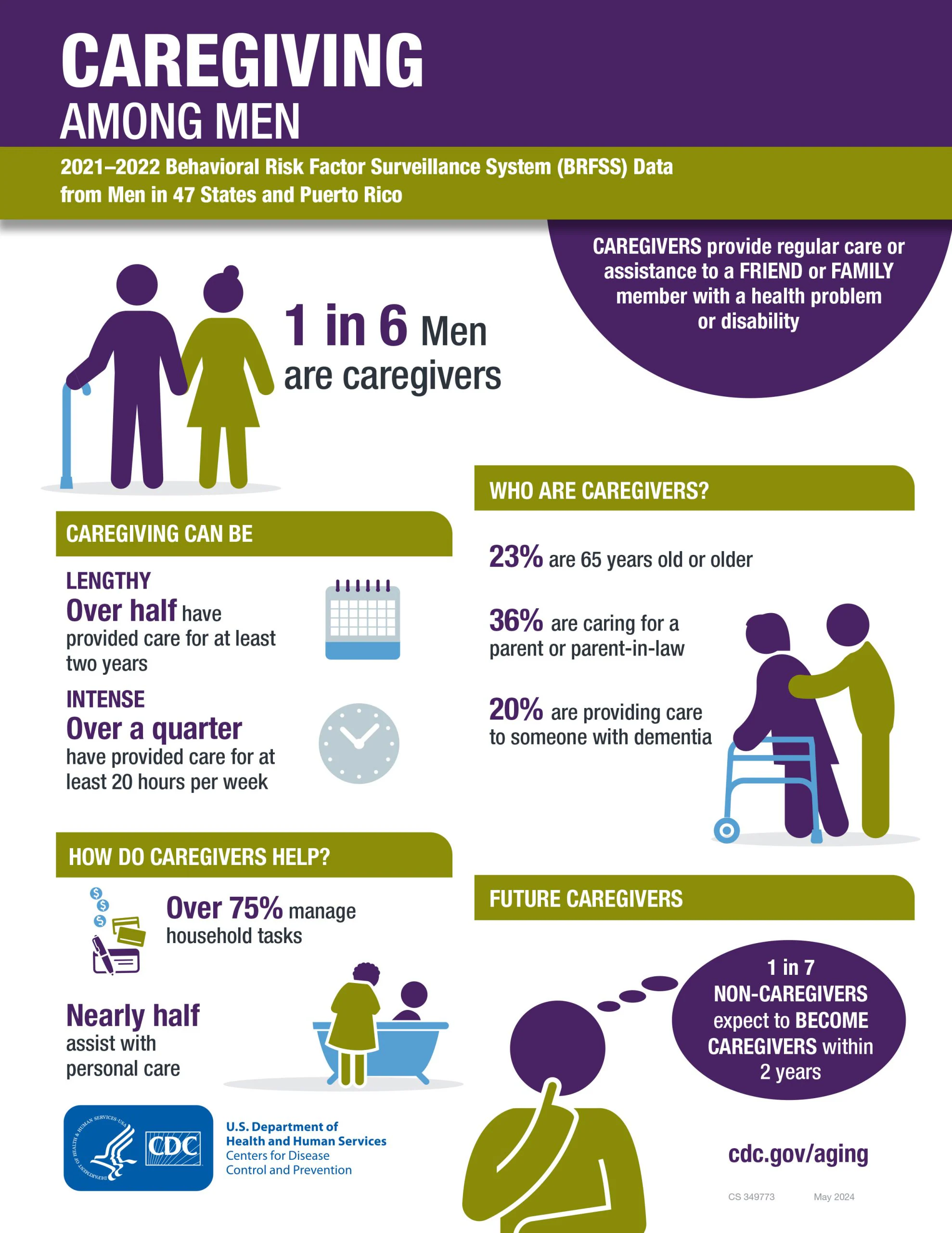 Original site: www.cdc.gov/healthy-aging-data/infographics/caregiving-among-men-2021-2022.html | RestoredCDC.org is an independent project, not affiliated with CDC or any federal entity. Visit CDC.gov for free official information. Due to archival on January 6, 2025, recent outbreak data is unavailable. Videos are not restored. Access data.restoredcdc.org for restored data. Use of this site implies acceptance of this disclaimer.