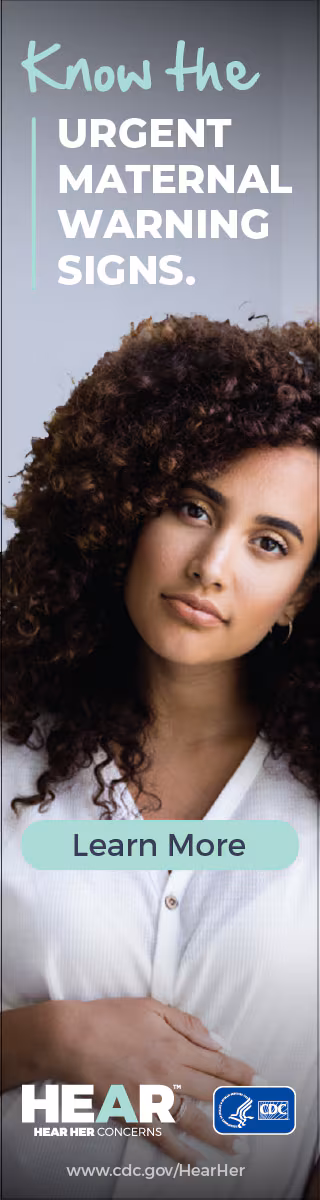 | <a href="http://dev2.restoredcdc.org/hearher/maternal-warning-signs/index.html?s_cid=DRH_HearHer_English-300x600-aqua" title="Hear Her: Learn the warning signs. It could help save a life"><img src="https://www.cdc.gov/hearher/images/resources/download/English-300x600-aqua.jpg" alt="Hear Her: Learn the warning signs. It could help save a life."></a> |
