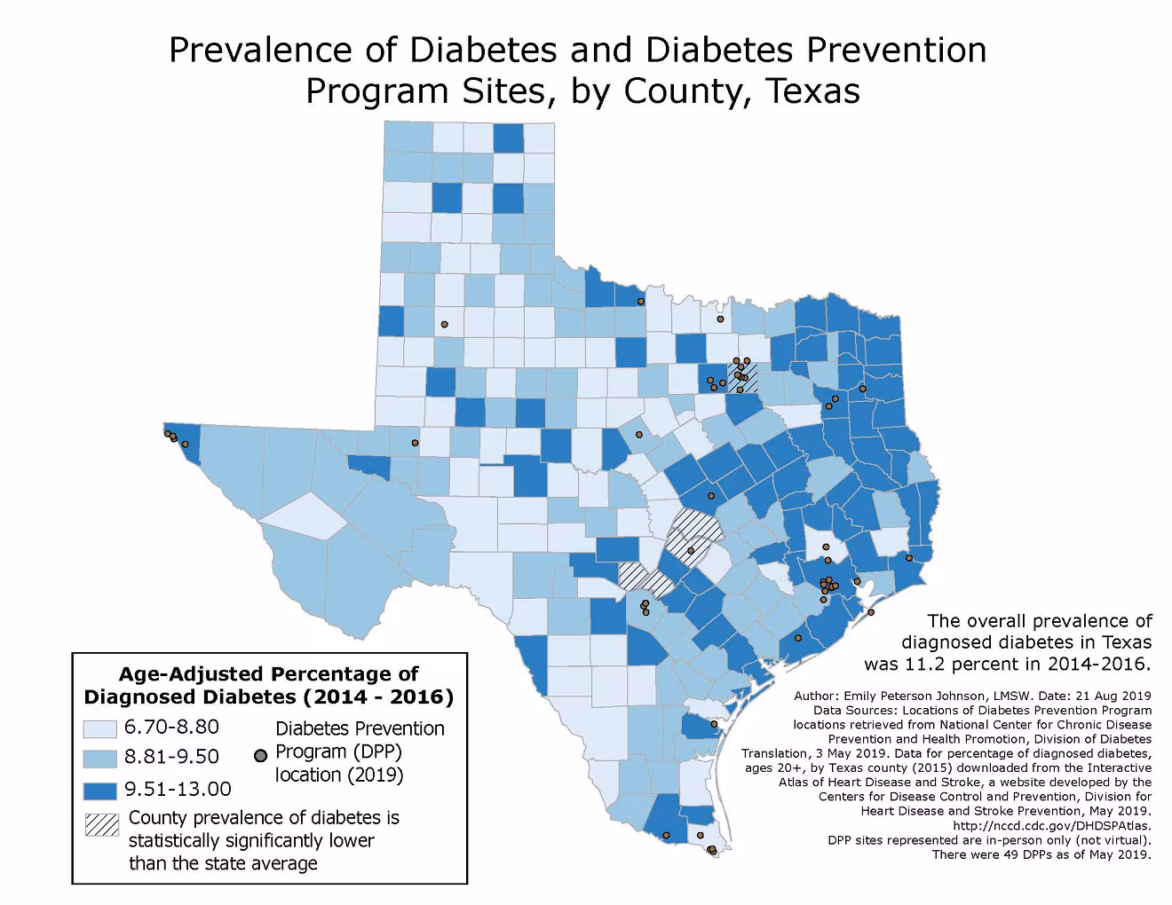 Emily Johnson, LMSW, Chronic Disease Epidemiology Branch Texas Department of State Health Services. Accessed from the Centers for Disease Control and Prevention's Chronic Disease Map Gallery.