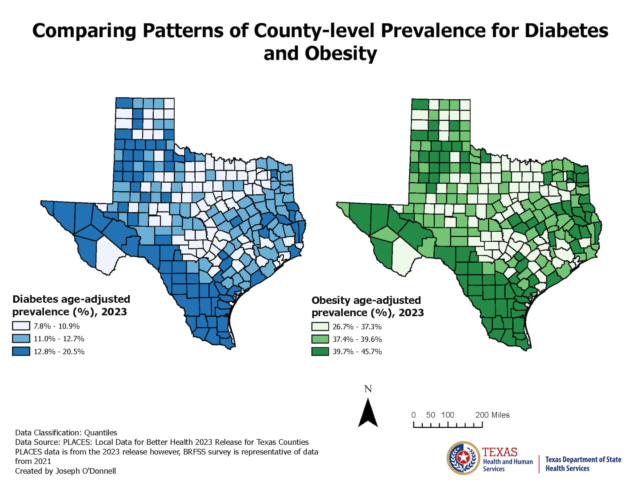 Joseph O'Donnell, Epidemiology II, Texas Department of State Health Services. Accessed from the Centers for Disease Control and Prevention's Chronic Disease Map Gallery.