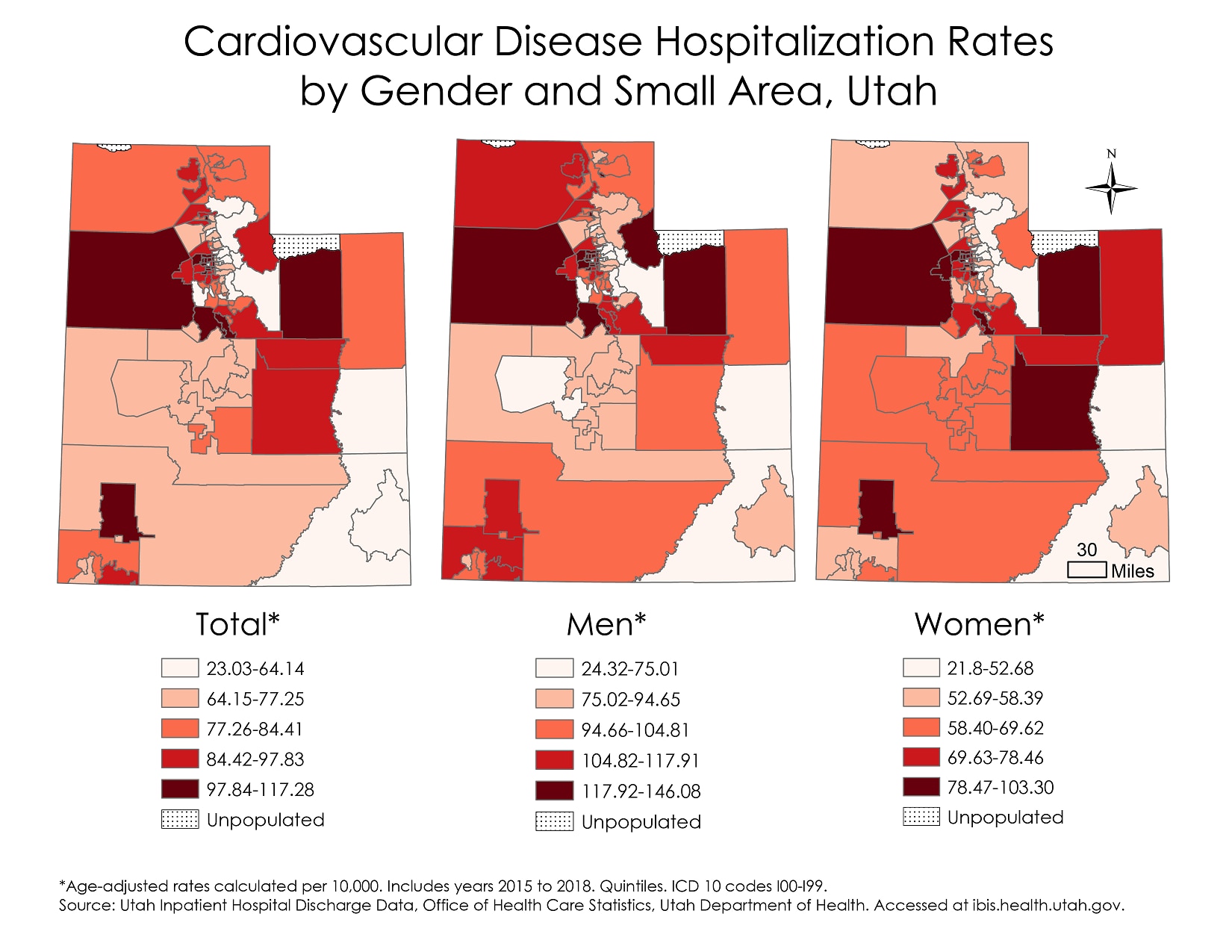 Brittany Brown, Utah Department of Health. Accessed from the Centers for Disease Control and Prevention’s Chronic Disease GIS Exchange https://www.cdc.gov/dhdsp/maps/gisx/mapgallery/UT-cvd-hosp-gender.html Accessed from the Centers for Disease Control and Prevention's Chronic Disease Map Gallery.