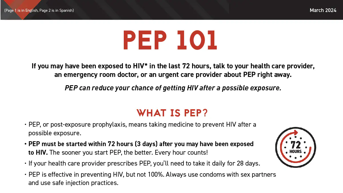 - PEP (post-exposure prophylaxis) is medicine people take to prevent HIV after a possible exposure.