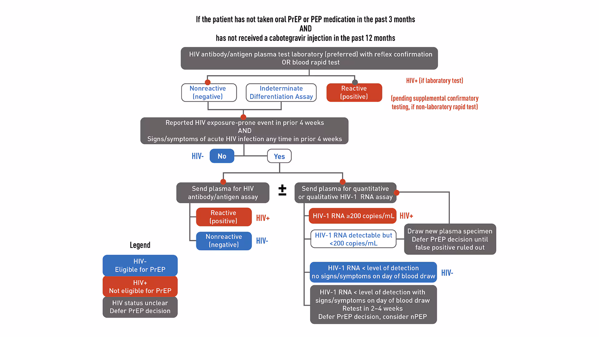 - PrEP should be deferred while testing is repeated on a new blood specimen.
