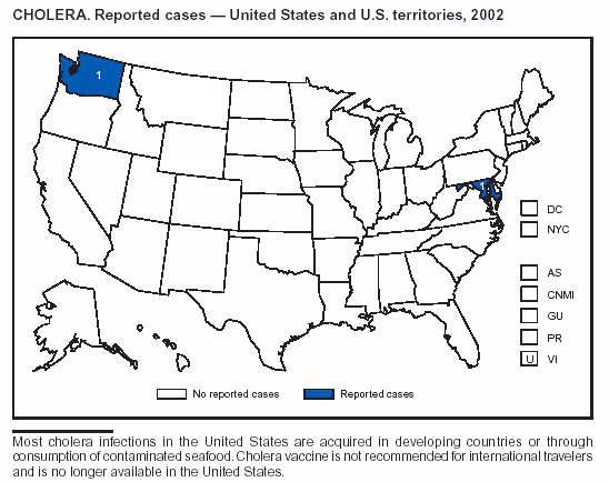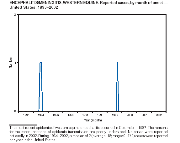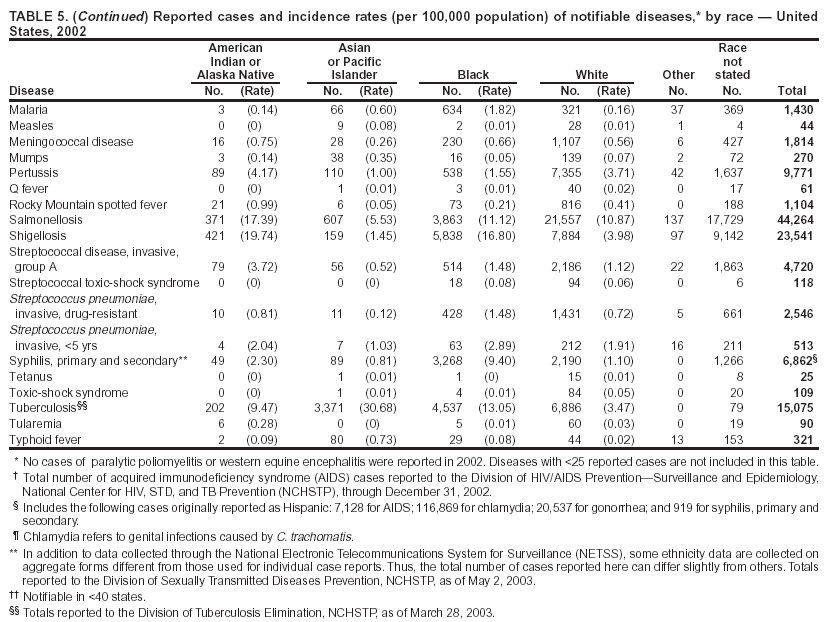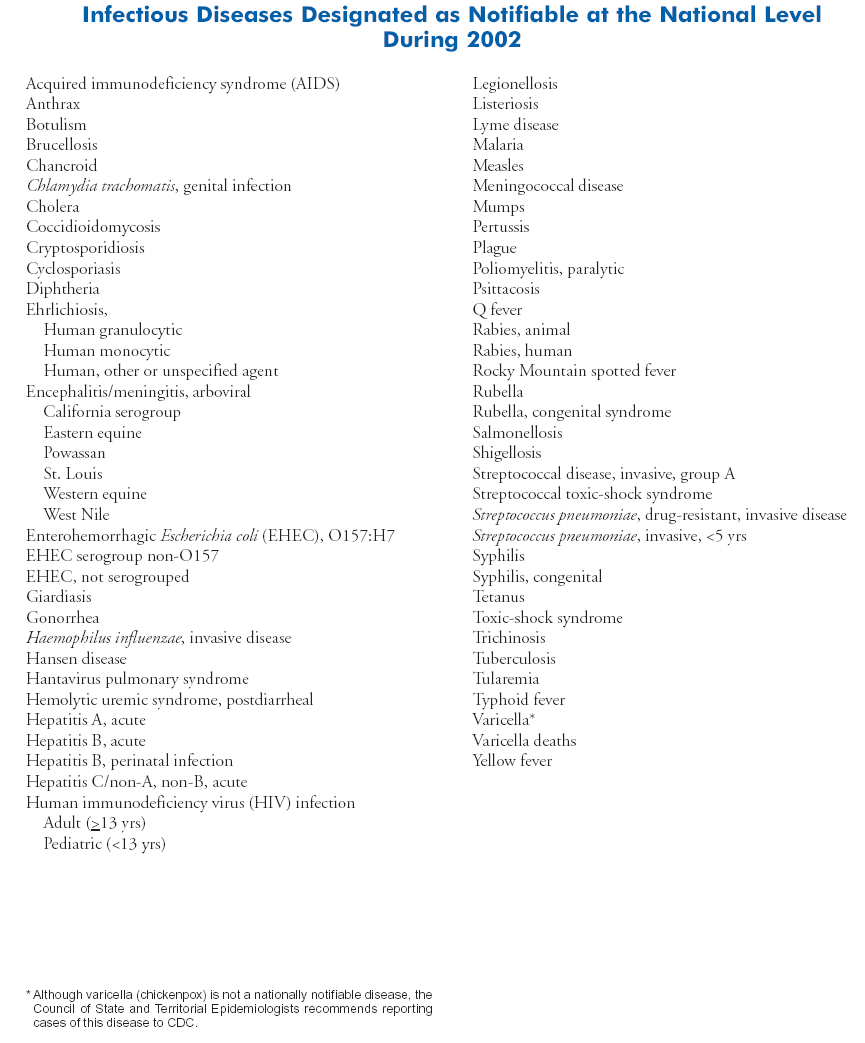 * Because no cases of paralytic poliomyelitis and western equine encephalitis were reported in the United States during 2002, these diseases do not appear in the tables in Part 1.