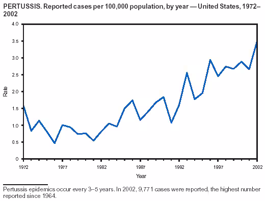 Vitek CR, Pascual FB, Baughman AL, Murphy TV. Increase in deaths from pertussis among young infants in the United States in the 1990s. Pediatr Infect Dis J 2003;22:628--34.