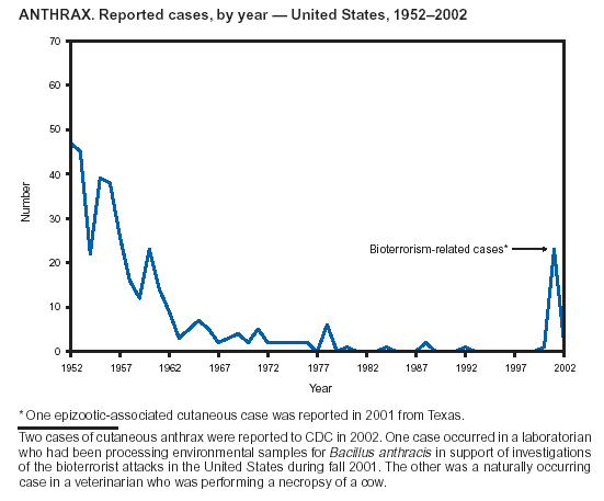 Feldman KA, Enscore RE, Lathrop SL, et al. Outbreak of primary pneumonic tularemia on Martha's Vineyard. N Engl J