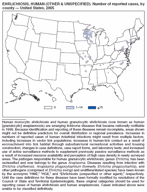 Chapman AS, Murphy SM, Demma LJ, et al. Rocky Mountain spotted fever in the United States, 1997--2002. Vector Borne Zoonotic Dis 2006;6:170--8.