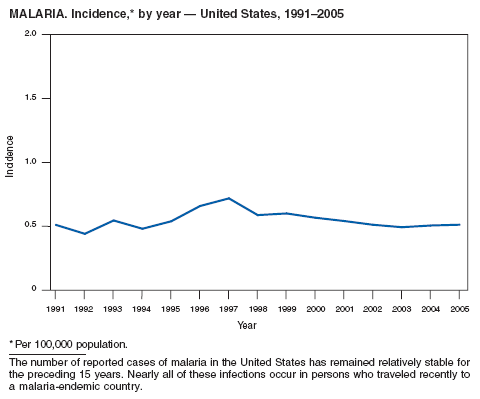 Leder K, Black J, O'Brien D, et al. Malaria in travelers: a review of the GeoSentinel Surveillance Network. Clin Infect Dis 2004;39:1104--12.