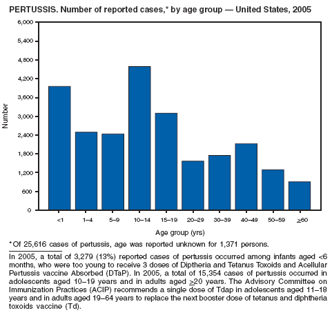 Lee GM, Lebaron C, Murphy TV, Lett S, Schauer S, Lieu TA. Pertussis in adolescents and adults: should we vaccinate? Pediatrics 2005;115:1675--84.