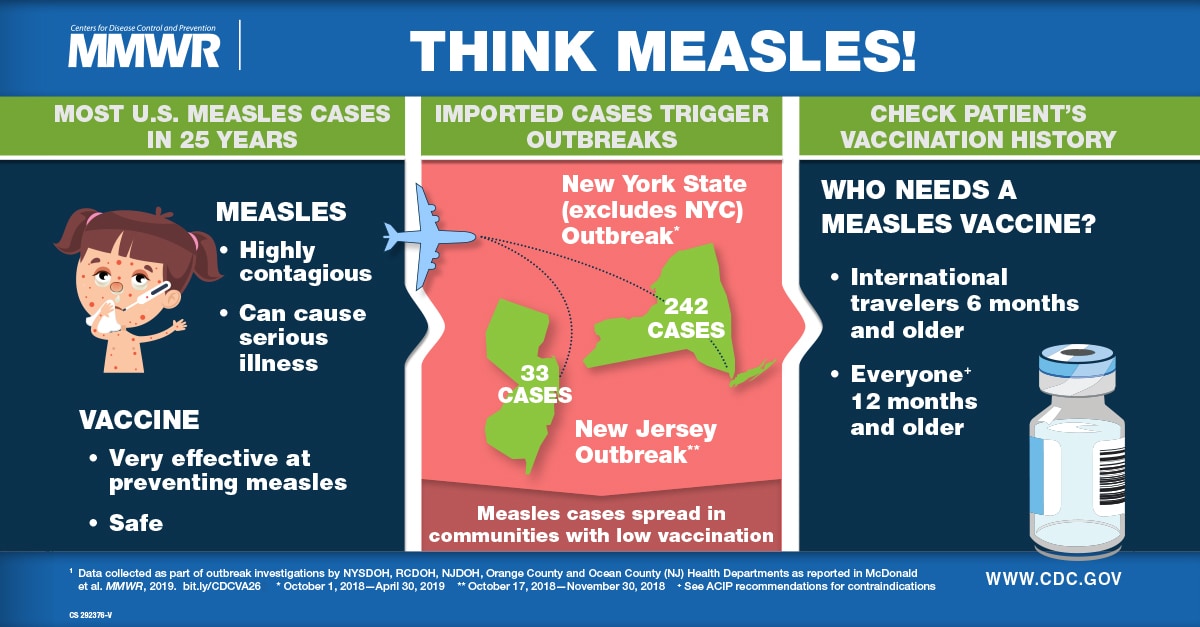 Notes from the Field: Measles Outbreaks from Imported Cases in Orthodox Jewish Communities — New York and New Jersey, 2018–2019