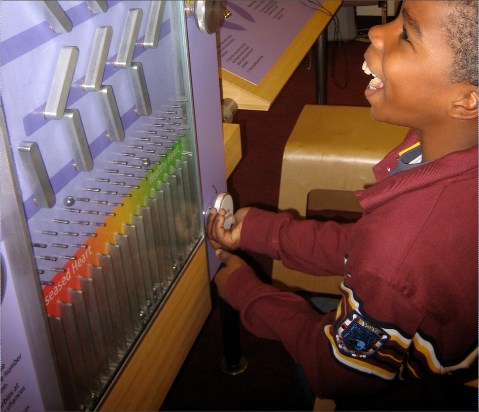 Your Genes, Your Choices targeted upper elementary school students and their parents and was designed to help visitors look at genes from a biological, global, historical, and medical perspective. The interactive stations allowed visitors to explore the concept of genetic variation, the relationship between skin color and solar radiation, the role of genes in causing disease, and the relationship between lifestyle choices and genes in impacting a person’s overall health.