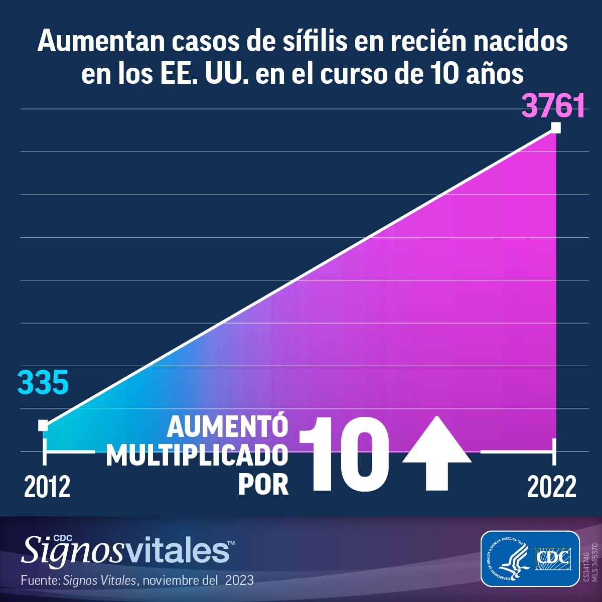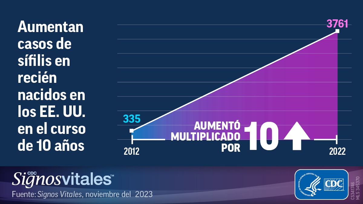 Los nuevos datos de los CDC revelan que más de 3700 bebés nacieron con sífilis en el 2022, lo cual fue más de diez veces la cantidad de casos en el 2012. El aumento en los casos de sífilis en recién nacidos sigue al aumento en los casos de sífilis entre las mujeres en edad reproductiva en combinación con factores sociales y económicos que crean barreras a los cuidados prenatales de alta calidad, y con la disminución en curso en la infraestructura y los recursos para la prevención.