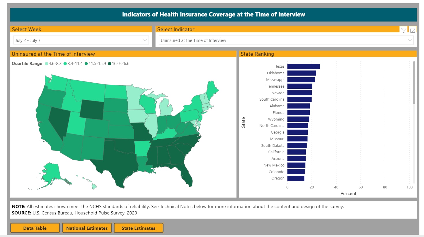 As part of the project, CDC’s National Center for Health Statistics (NCHS) is gathering data to monitor symptoms of anxiety and depression, whether people are delaying medical care, and if their health insurance coverage has changed.