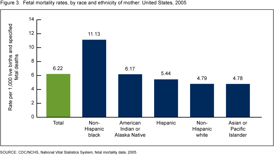 - Fetal mortality rates are substantially higher for non-Hispanic black and American Indian or Alaska Native women than for non-Hispanic white women.