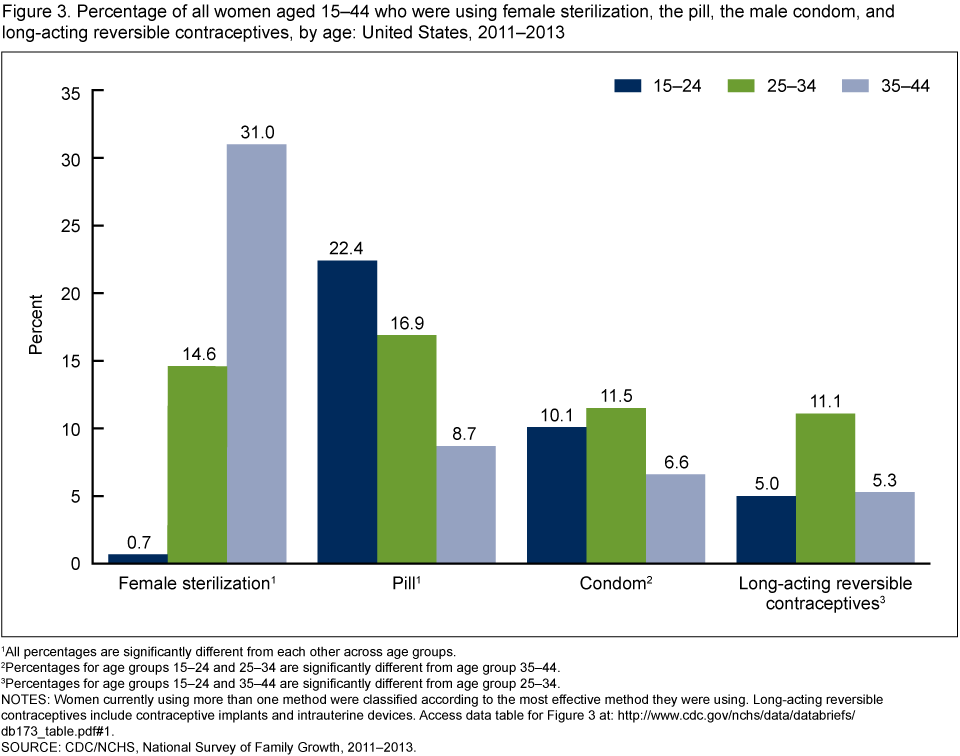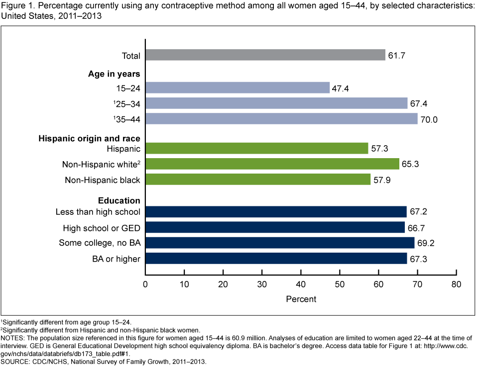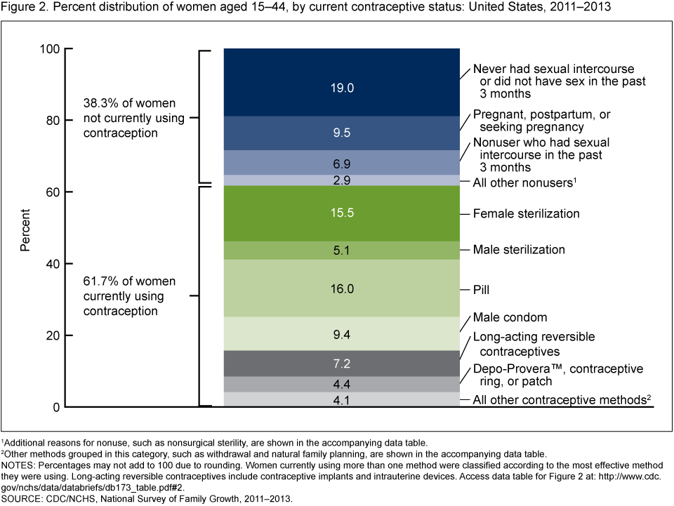 Daniels K, Daugherty J, Jones J. Current contraceptive status among women aged 15–44: United States, 2011–2013. NCHS data brief, no 173. Hyattsville, MD: National Center for Health Statistics. 2014.