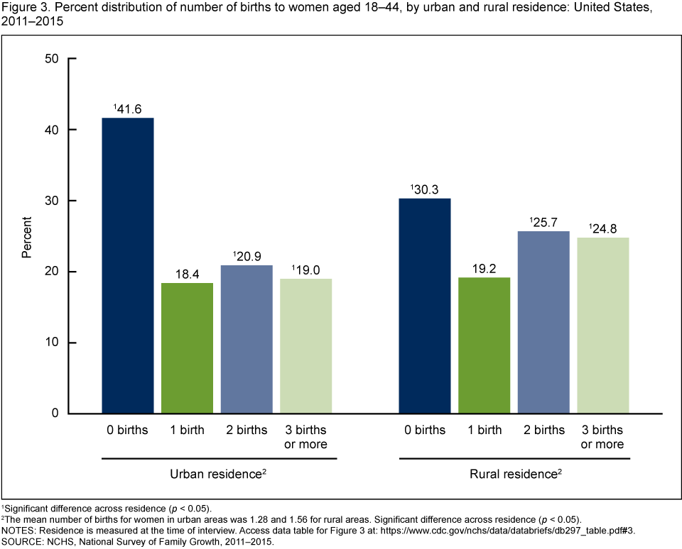 Daniels K, Martinez GM, Nugent CN. Urban and rural variation in fertility-related behavior among U.S. women, 2011–2015. NCHS Data Brief, no 297. Hyattsville, MD: National Center for Health Statistics. 2018.