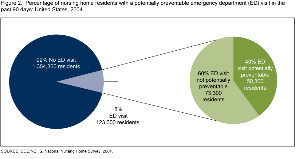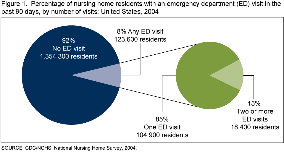 - In 2004, 8 percent of U.S. nursing home residents had an emergency department (ED) visit in the past 90 days.