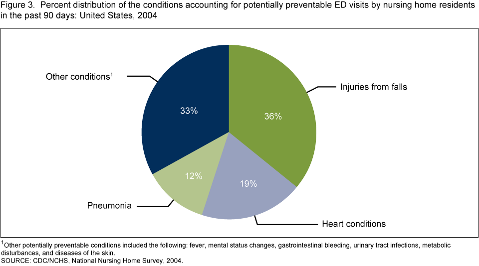 - Injuries from falls were the most common conditions accounting for potentially preventable ED visits by nursing home residents.