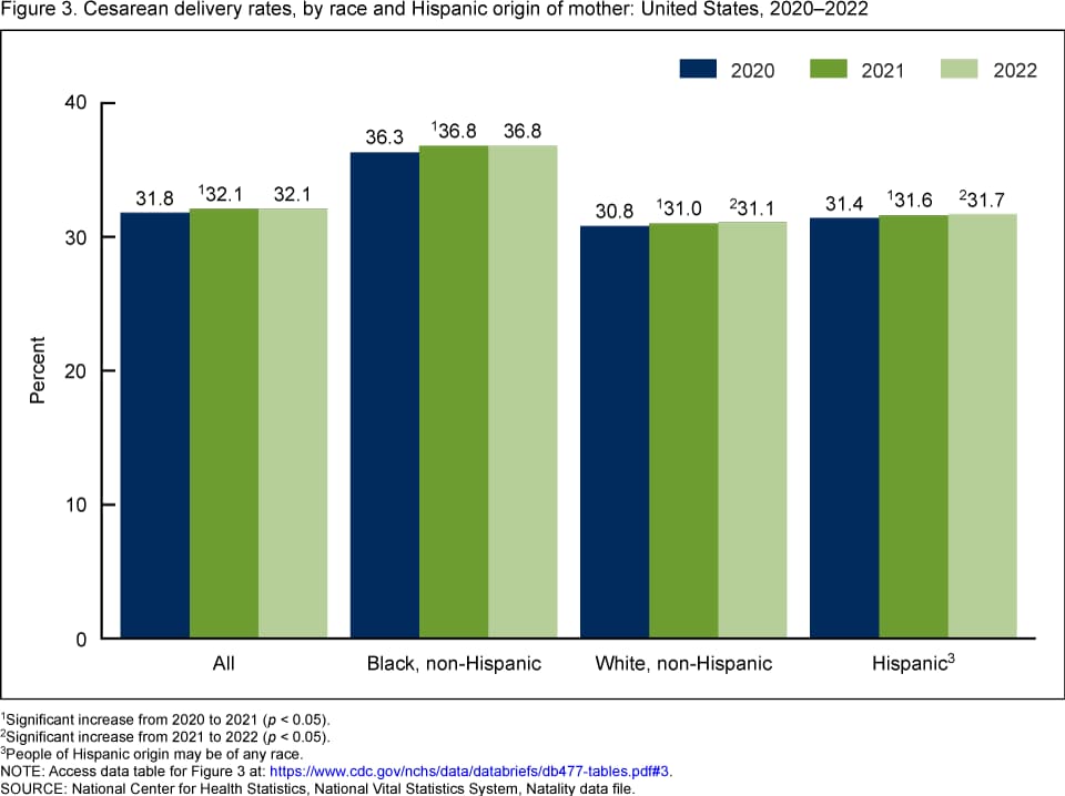 Figure 3. Cesarean delivery rates, by race and Hispanic origin of mother: United States, 2020–2022