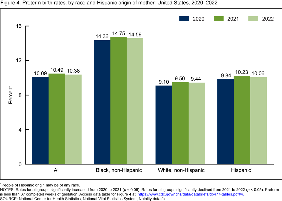 Figure 4. Preterm birth rates, by race and Hispanic origin of mother: United States, 2020–2022