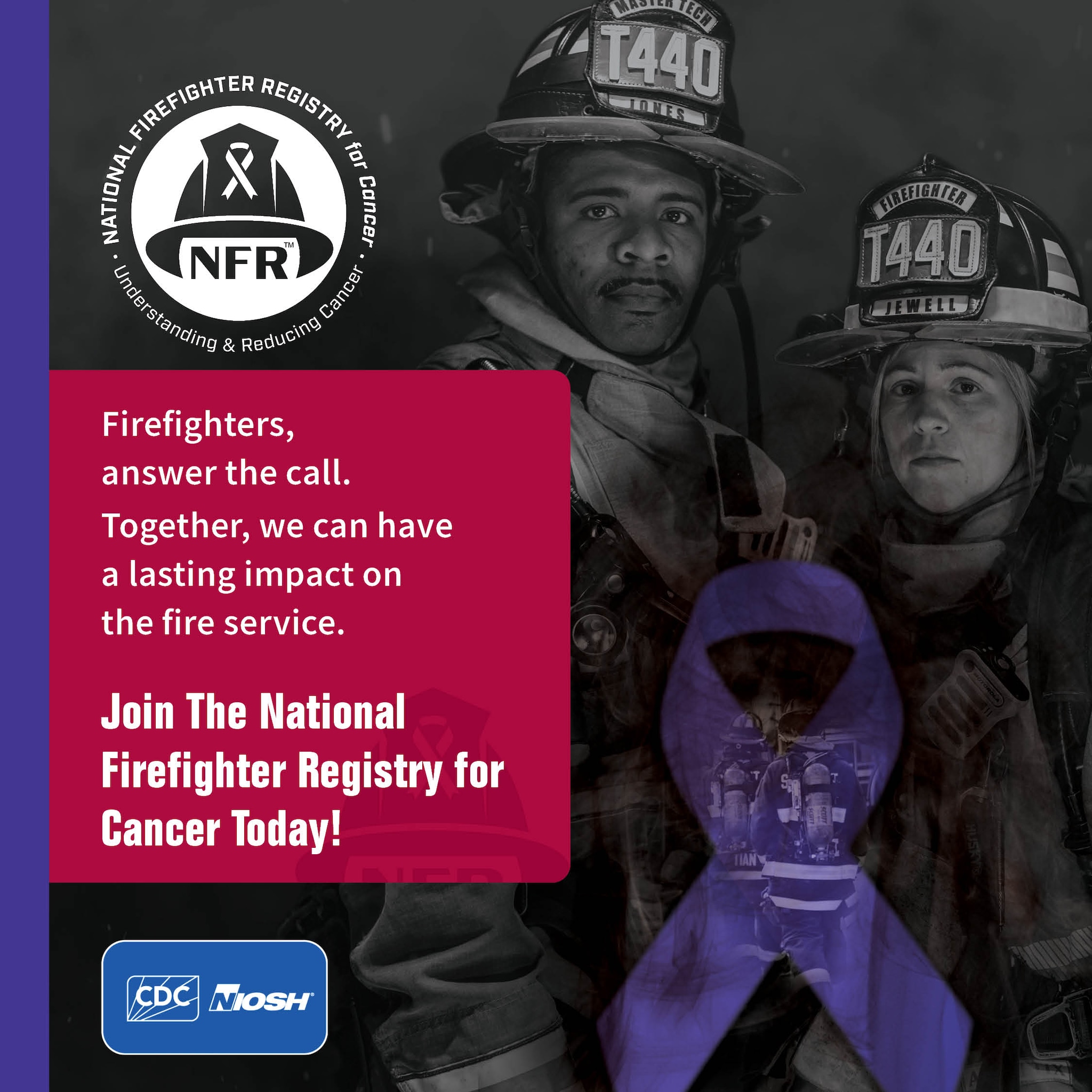 With your participation in the National Firefighter Registry (NFR) for Cancer, we can leave the fire service better than we found it. You can help make sure everyone in the fire service is represented. Share the materials below with your network.