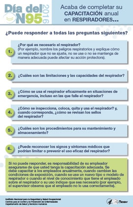 Infographic identifying questions employees should be able to answer upon completing their annual respirator training.