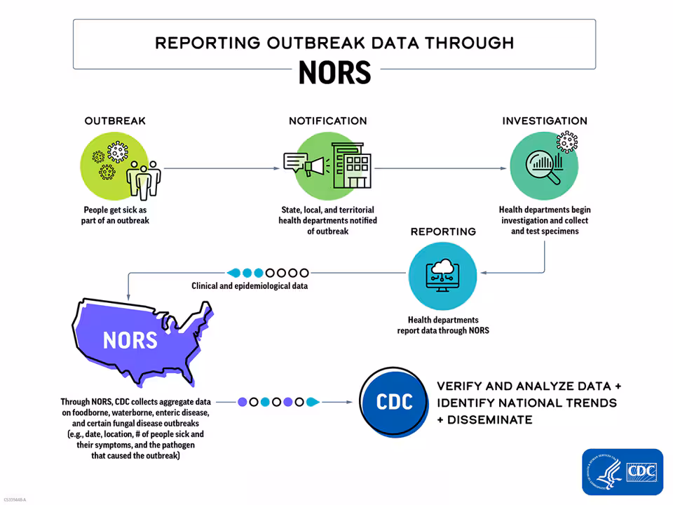 The National Outbreak Reporting System (NORS) supports outbreak reporting by partners in state, local, and territorial public health agencies.
