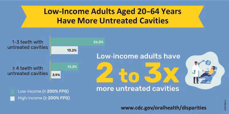 Low-Income Adults Aged 20-64 Years Have More Untreated Cavities.