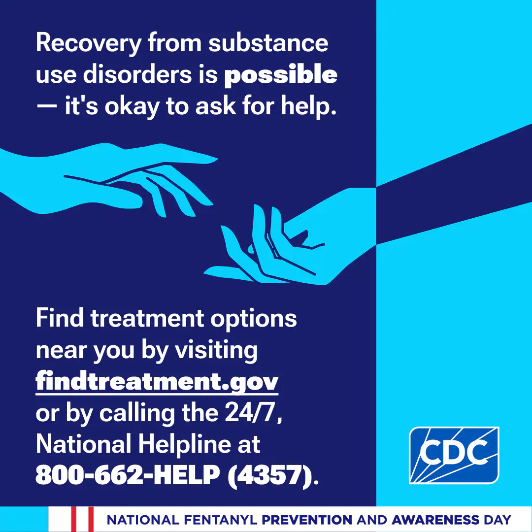 Addiction can happen to anyone, but with treatment, #recovery is possible. This National Fentanyl Prevention and Awareness Day, if you know someone struggling with #addiction, encourage them to get help. Treatment may save a life: https://www.cdc.gov/overdose-prevention/treatment/index.html