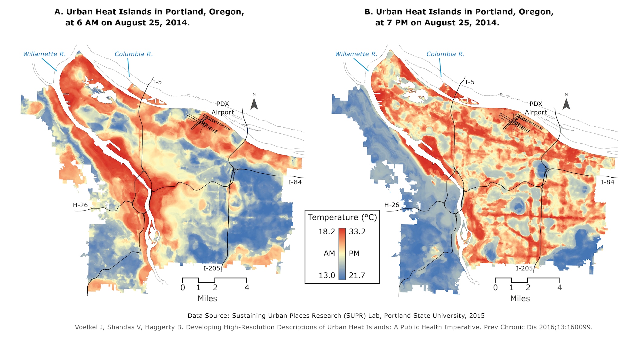 Suggested citation for this article: Voelkel J, Shandas V, Haggerty B. Developing High-Resolution Descriptions of Urban Heat Islands: A Public Health Imperative. Prev Chronic Dis 2016;13:160099. DOI: http://dx.doi.org/10.5888/pcd13.160099external icon.