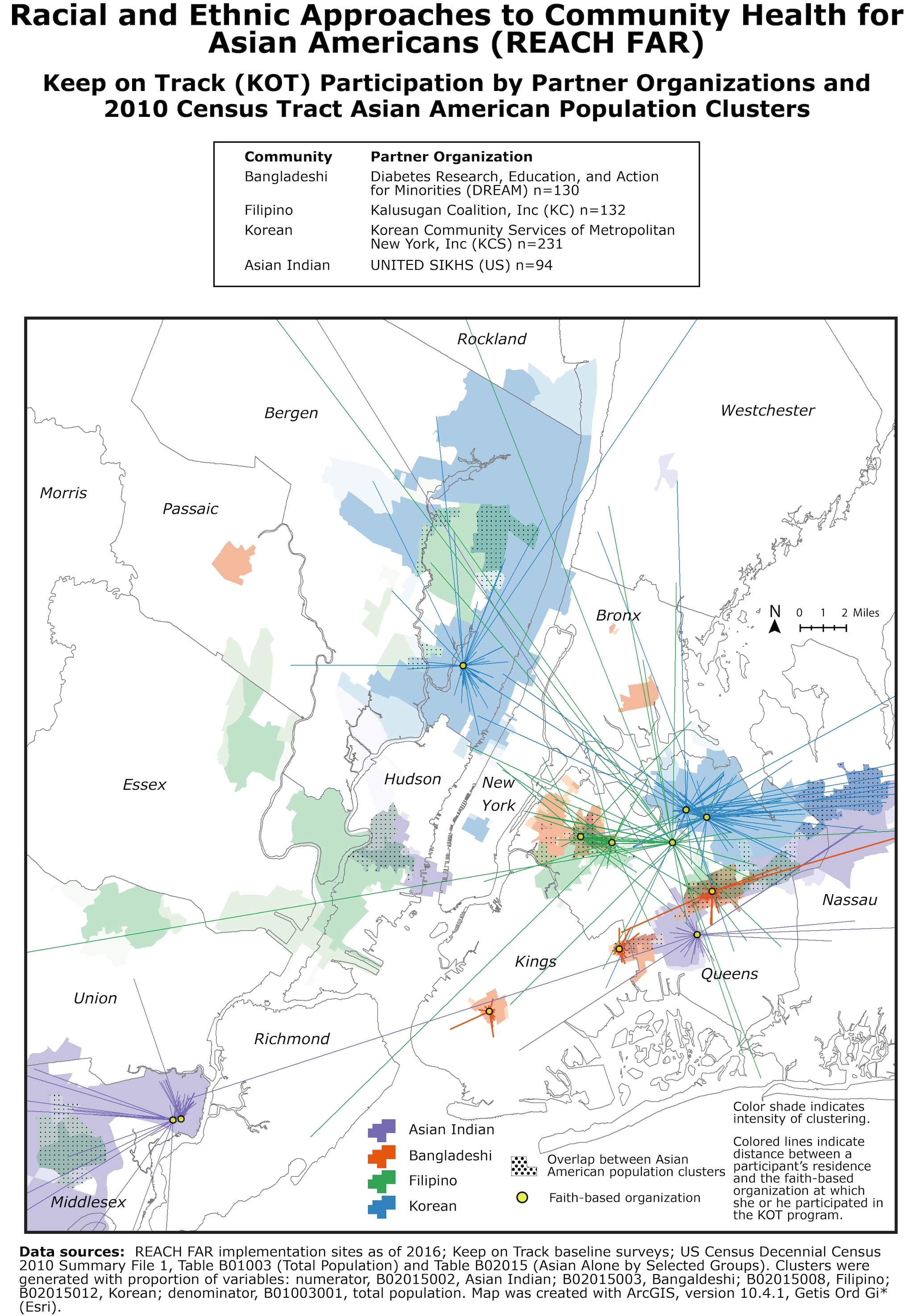Suggested citation for this article: Kum SS, Patel S, Garcia MJ, Kim SS, Kavathe R, Choy C, et al. Visualizing Reach of Racial and Ethnic Approaches to Community Health for Asian Americans: the REACH FAR Project in New York and New Jersey. Prev Chronic Dis 2018;15:180026. DOI: http://dx.doi.org/10.5888/pcd15.180026.