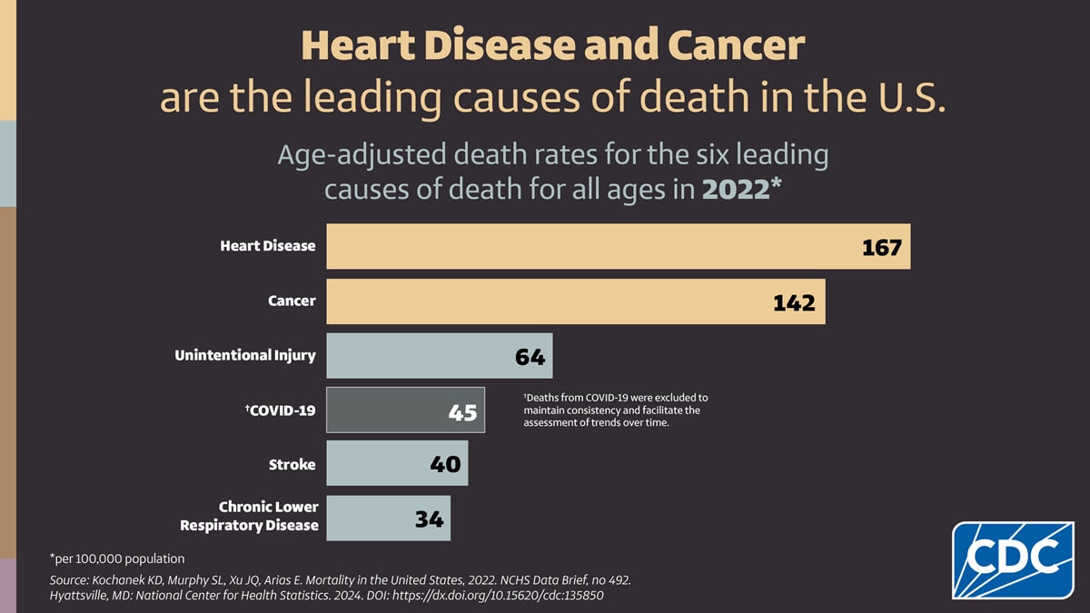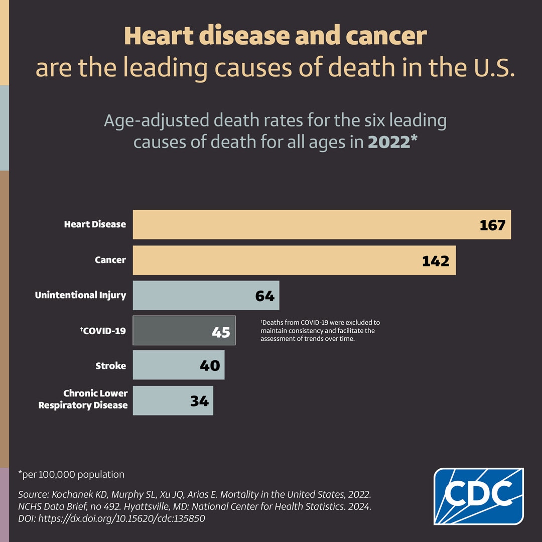 Heart disease and cancer are the leading causes of death in the U.S. [Social media square 1200x675]