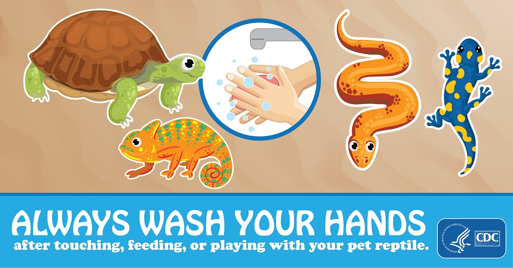 - This graphic can be used as a social media post or a sticker and illustrates handwashing when handling pet reptiles, including bearded dragons.