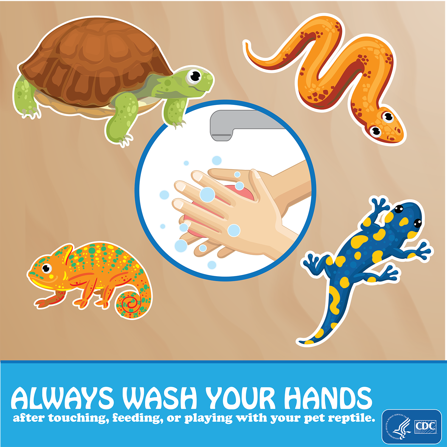 - Always wash hands thoroughly with soap and water right after touching or feeding your turtle and after touching or cleaning the area where it lives and roams.
