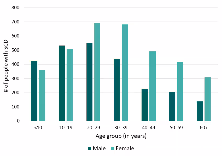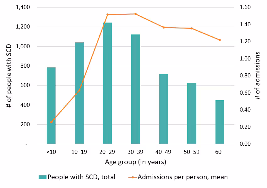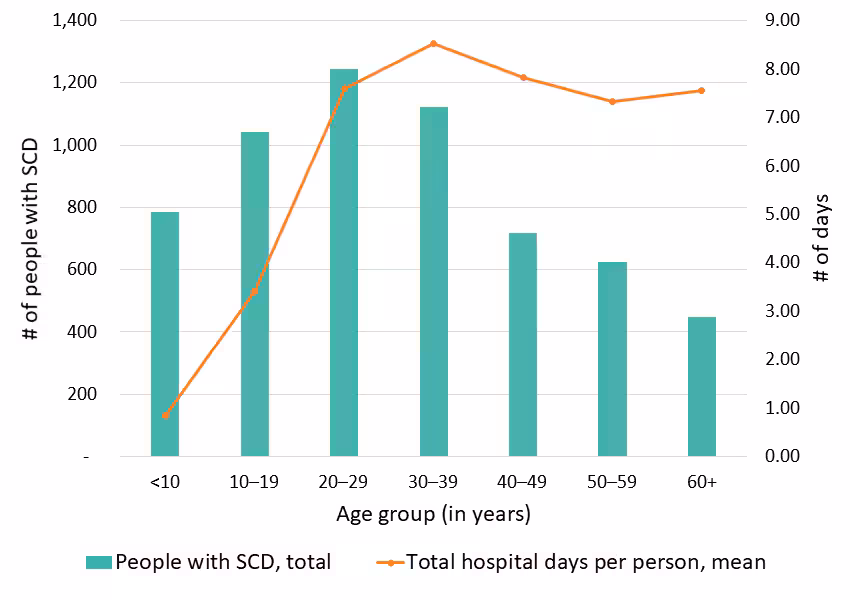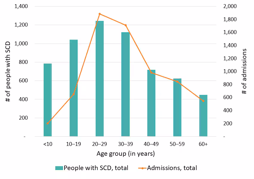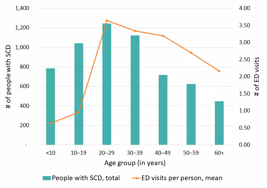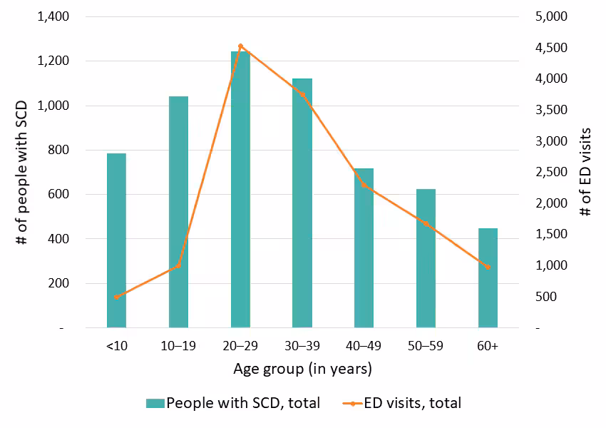 - Received care at one of the state's clinical sites providing data to SCDC and a laboratory-confirmed diagnosis of SCD and at least one of the following criteria:
